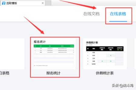 2、这时就会在浏览器打开创建在线表格的,可以选择不同的模板创建表格,我选择的是“报名统计”这个模板,选择相应的模板,点击立即使用。