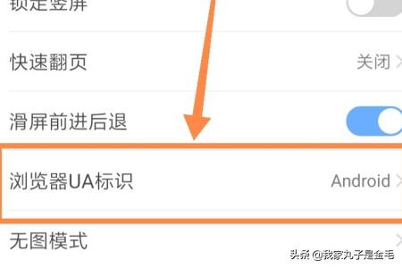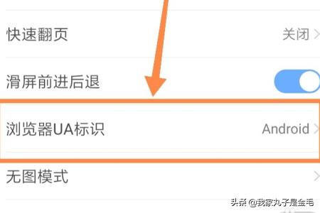 4、在设置界面中找到浏览器ua标识,点击进入。