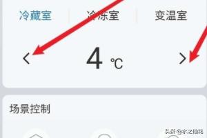 6、进入冰箱设备页面划动到最下方,即可通过点击"<"">"设置温度。