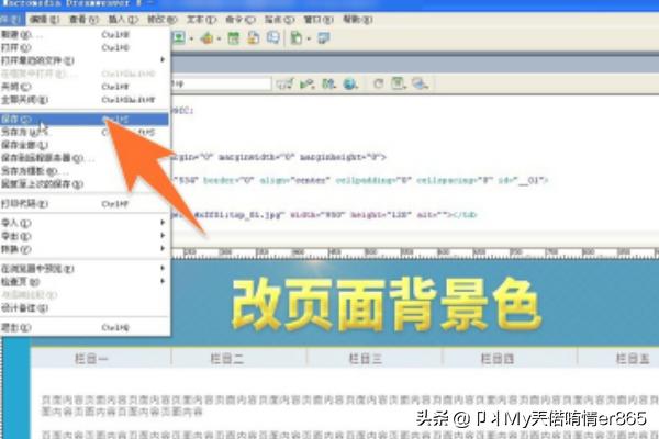 7.此时,在DW中,就能看到该html页面的背景颜色已成功的更换过来了,但是还需要点击文件下面的保存。