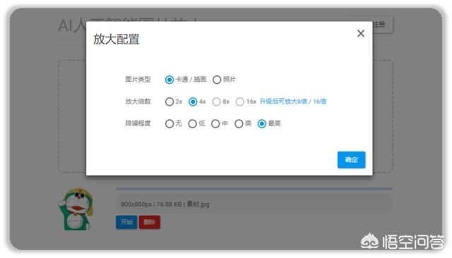 第三步:根据需求勾选图片类型、放大倍数、降噪程度,然后点击确定。