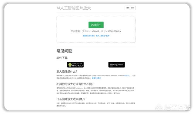 当你打开【AI智能图片放大】网站时,就会看到下面这个样子,非常简单的一个网站,功能却是非常强大。