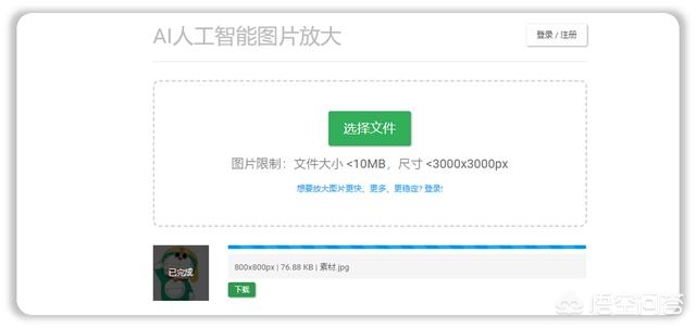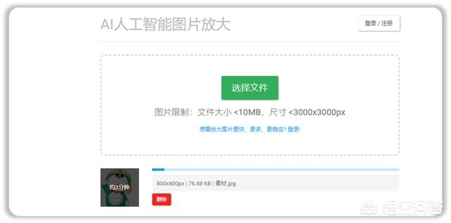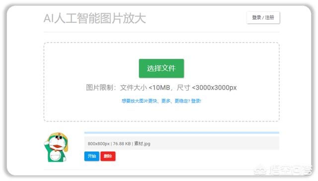 第一步:点击【选择文件】,导入一张需要放大的小图片。
