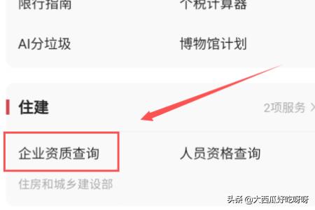 3、下滑页面,找到【企业资质查询】,然后点击进入。