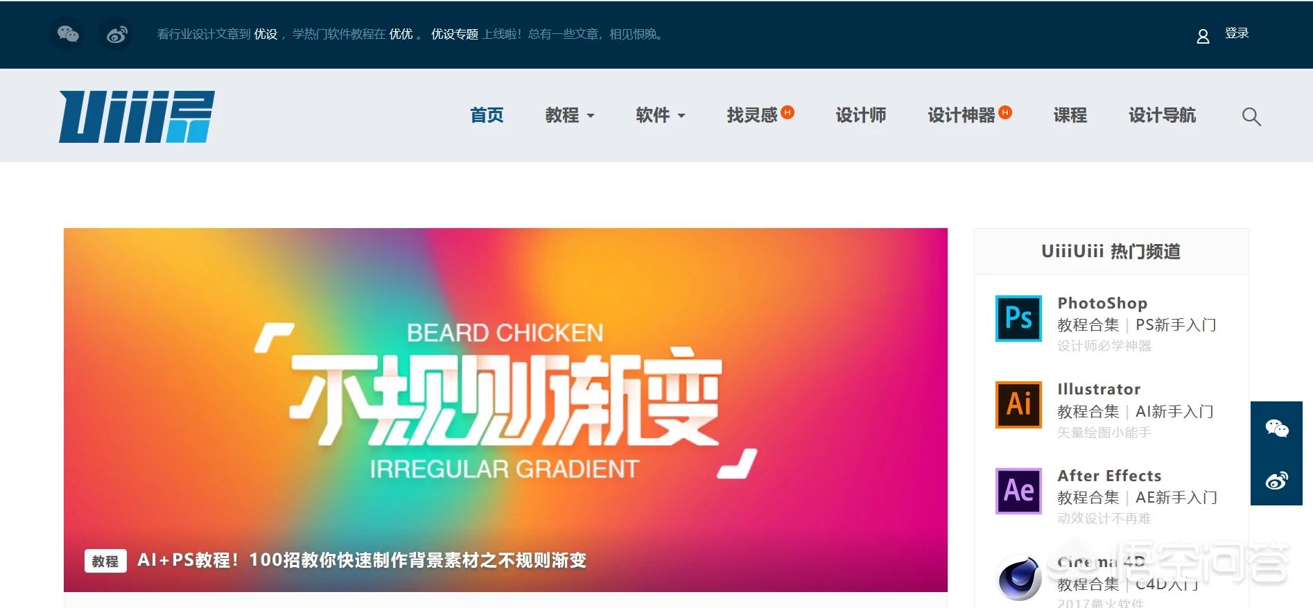 最后一个推荐的是优设旗下的优优教程网,有着各种免费的设计教程。