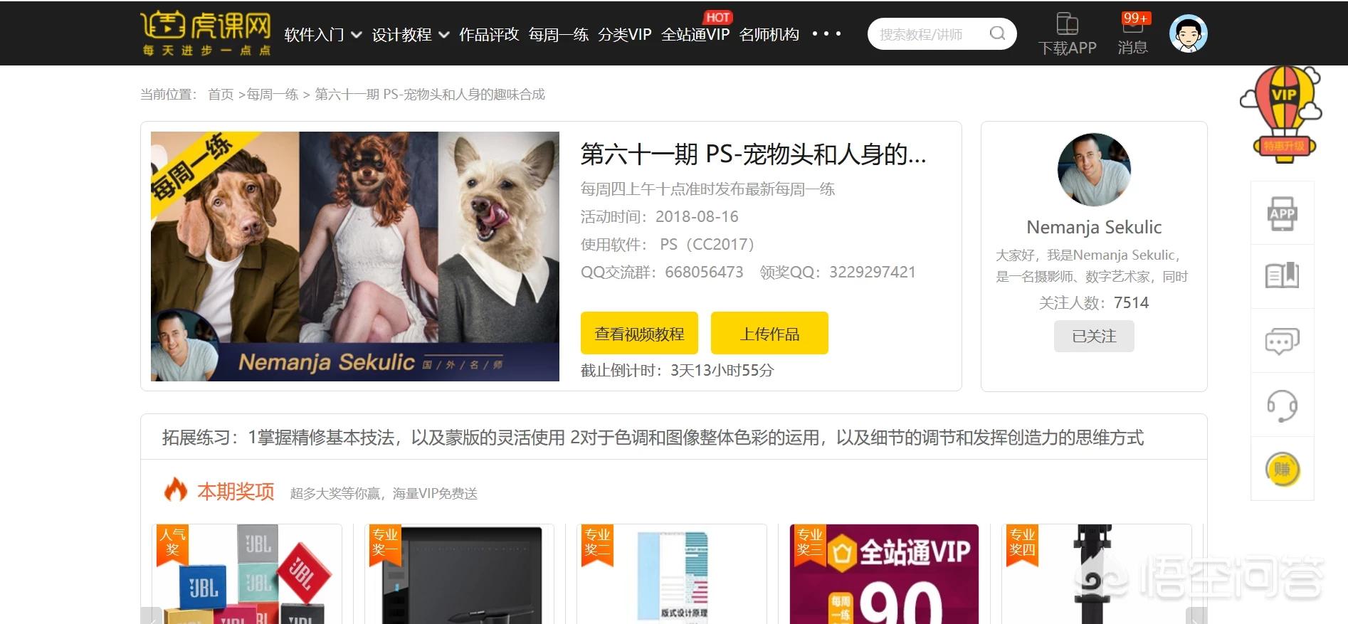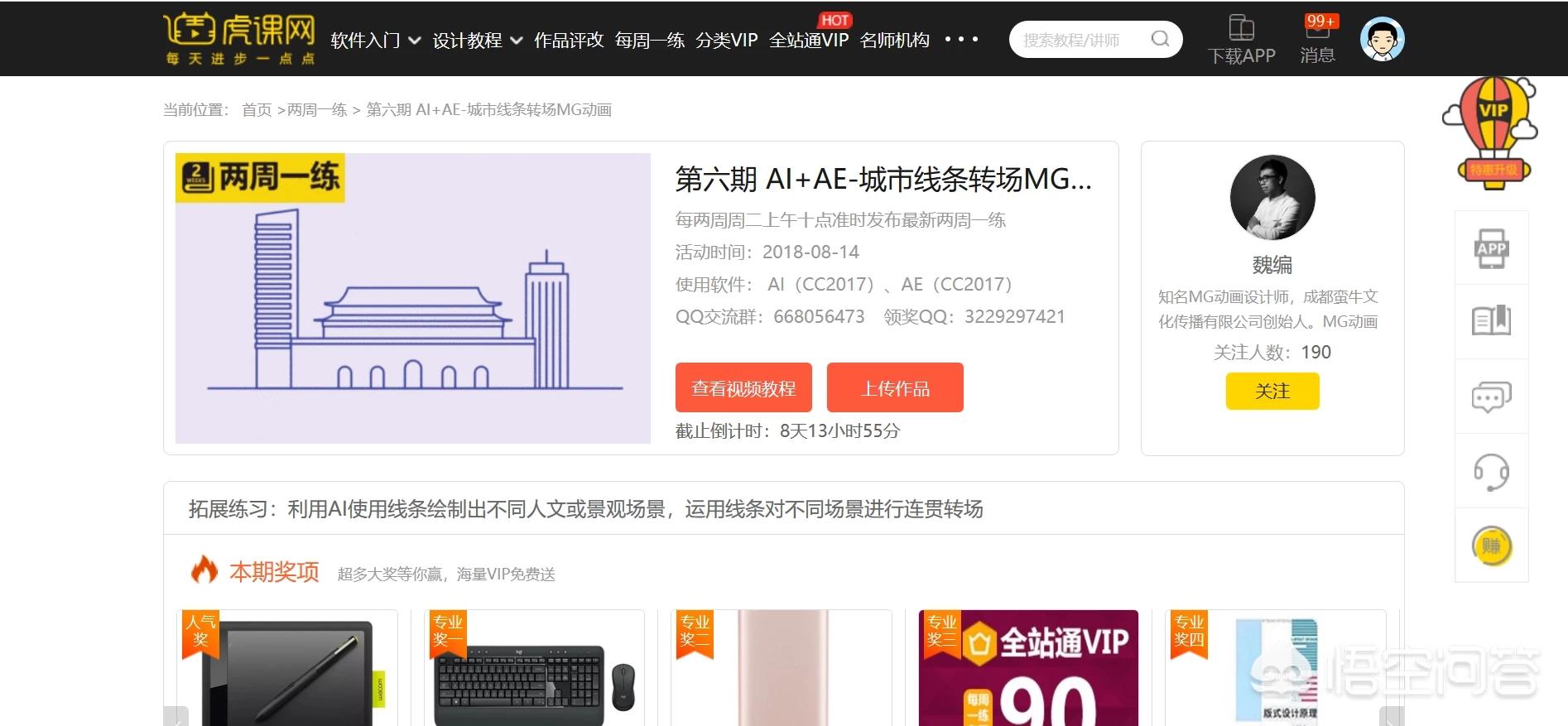 虎课网中有各种设计软件的教程,非常丰富,普通用户每天可以免费学习一个视频教程,而且有「每周一练」、「两周一练」的学习教程,可上传作品供老师评改,是个有着良好学习氛围且资源丰富的网站。