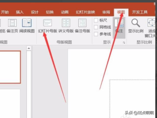 2、我们点击界面上方的视图选项,选择幻灯片母版。