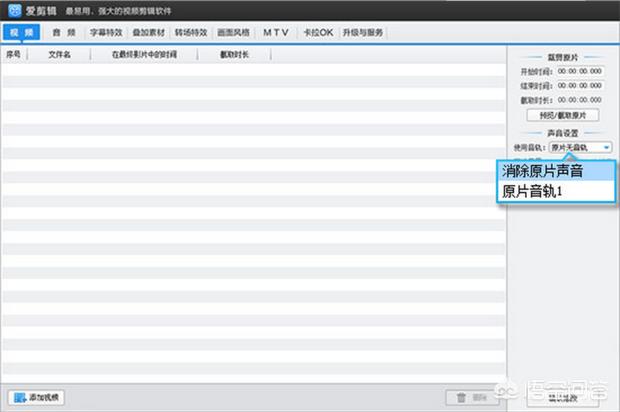 第五步:如果是要恶搞配音,在“视频”面板中对视频片段消除原片声音,并用手机录好配音,再导入爱剪辑就可以了(如下图):