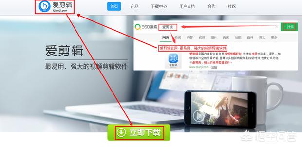 怎么做视频短片?第一步:制作视频短片肯定要用到软件,在这里我用360搜索一下“爱剪辑”并进入官网进行下载,下面就要用他来教你如何制作视频短片(如下图):